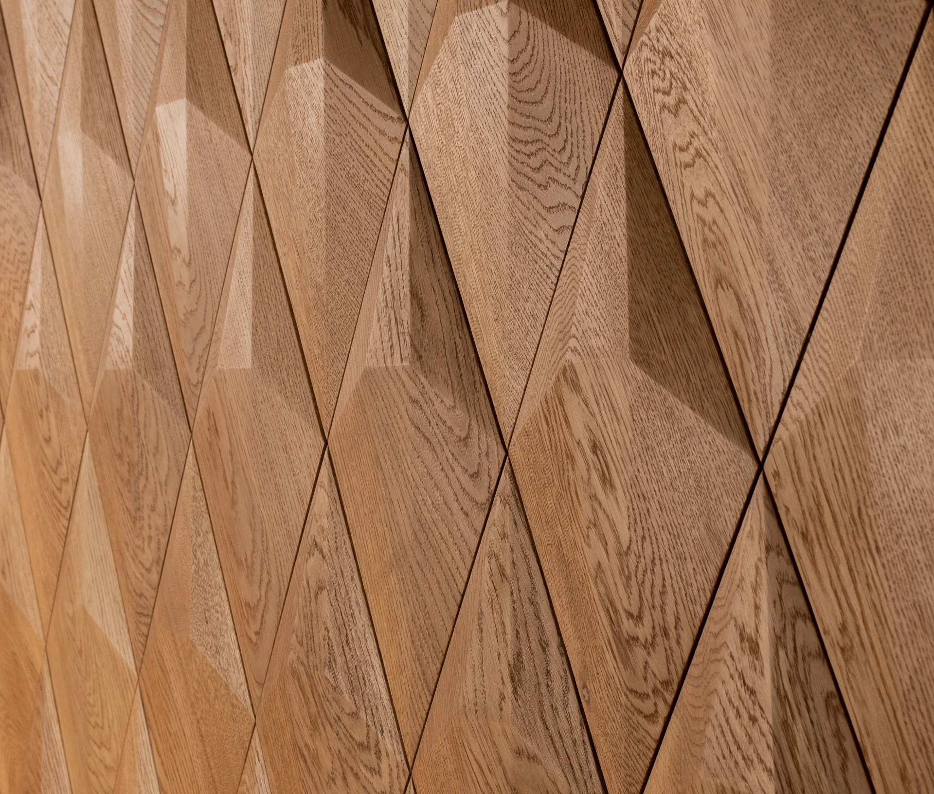 Drewno 3D Edge Galaxy od Nobifloor to drewniana dębowa dekoracja ścienna 3D o profilu rombu równobocznego. Panel ma geometryczną formę przypominającą diament. Zapewni on efekt przestrzenności dzięki wielu płaszczyznom załamującym światło.