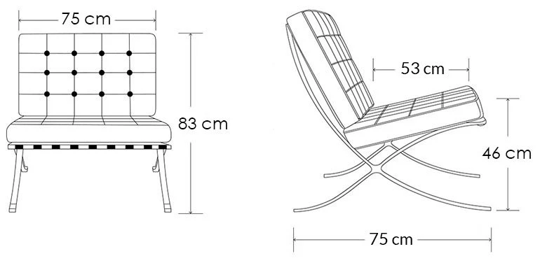 Siedzisko jest na wysokości 46 cm i zostało wykonane z selekcjonowanej skóry włoskiej, dzięki czemu cechuje je wysoka