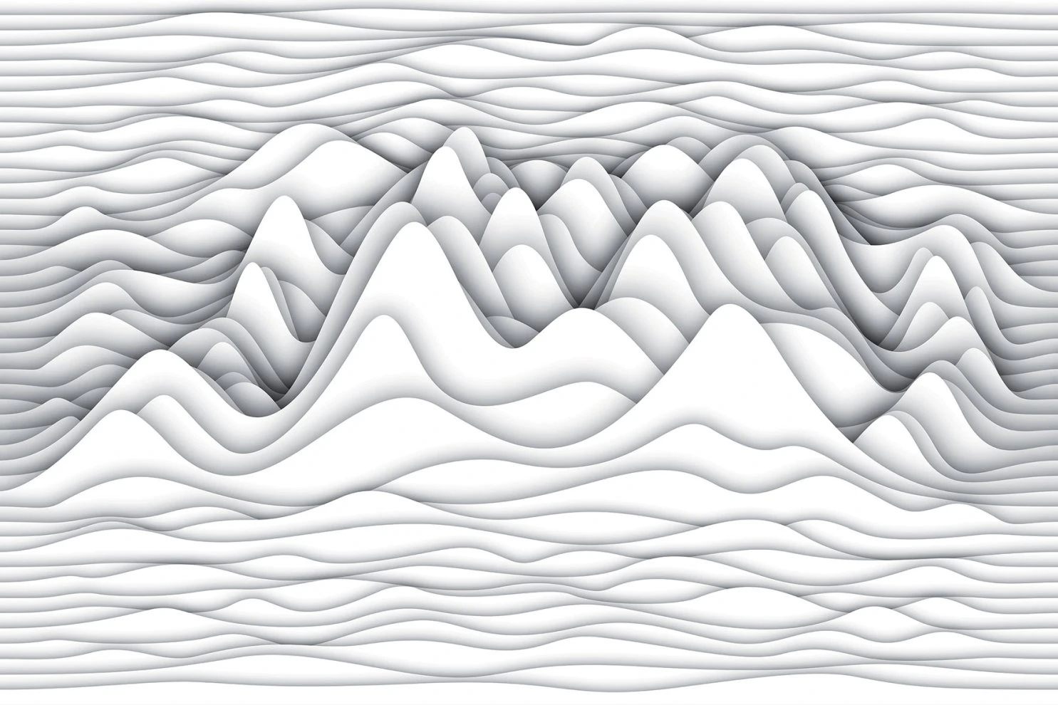 Belly Wood z kolekcji Glamora Paper Cut to designerska fototapeta ścienna. Trójwymiarowy pejzaż z nutką ironii. Falujące, wręcz roztańczone góry wycięte z kartek papieru. Eleganckie i ponadczasowe połączenie bieli z szarościami. Do nowoczesnych, przestronnych wnętrz mieszkalnych i komercyjnych.