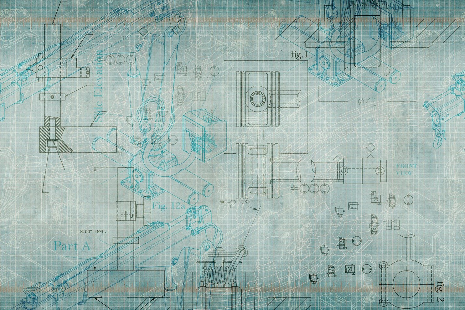 Blueprint z kolekcji Glamora Template to fototapeta ścienna w rysunek techniczny. Interesująca symbioza geometrii i techniki z pop artem i stylem industrialnym. Propozycja przede wszystkim do nowoczesnych, przestronnych wnętrz. Najlepiej sprawdzi się w towarzystwie metalu i szkła.