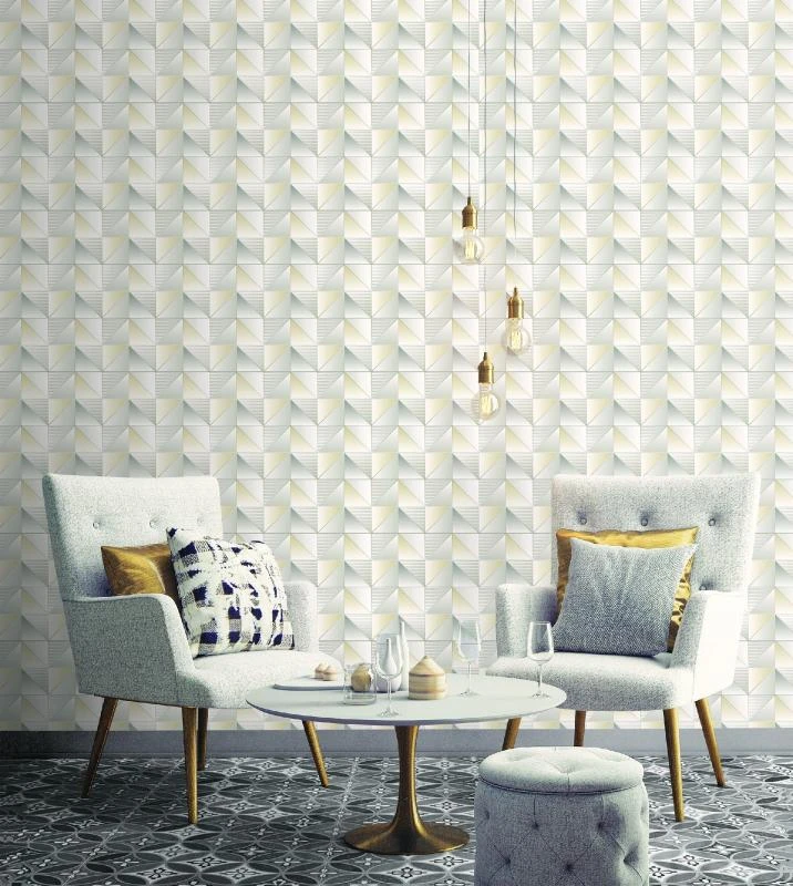 Tapeta z kolekcji Geometrix marki Galerie przedstawia ciekawy geometryczny wzór. Na ścianie tworzy iluzję trójwymiarową na ścianie. Sprawdzi się w sypialni, salonie, przedpokoju, gabinecie lub jadalni. Do wyboru 7 wariantów kolorystycznych.