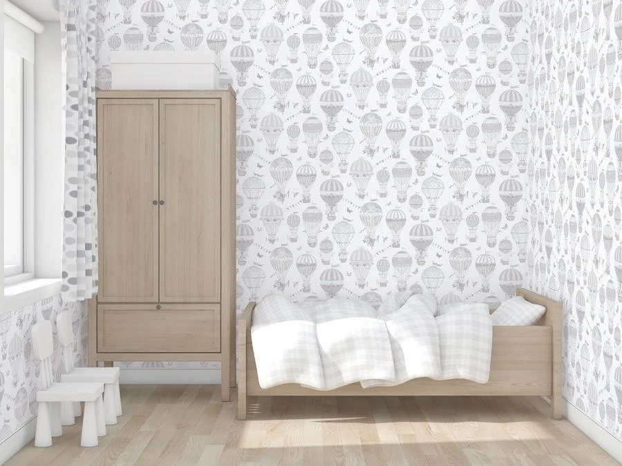 Ekologiczna tapeta z kolekcji Just 4 Kids 2 marki Galerie przedstawia balony na gorące powietrze. Zostały ozdobione niezwykłymi wzorami. Okładzina sprawdzi się w pokoju dziecięcym lub żłobku. Do wyboru 3 kolory.