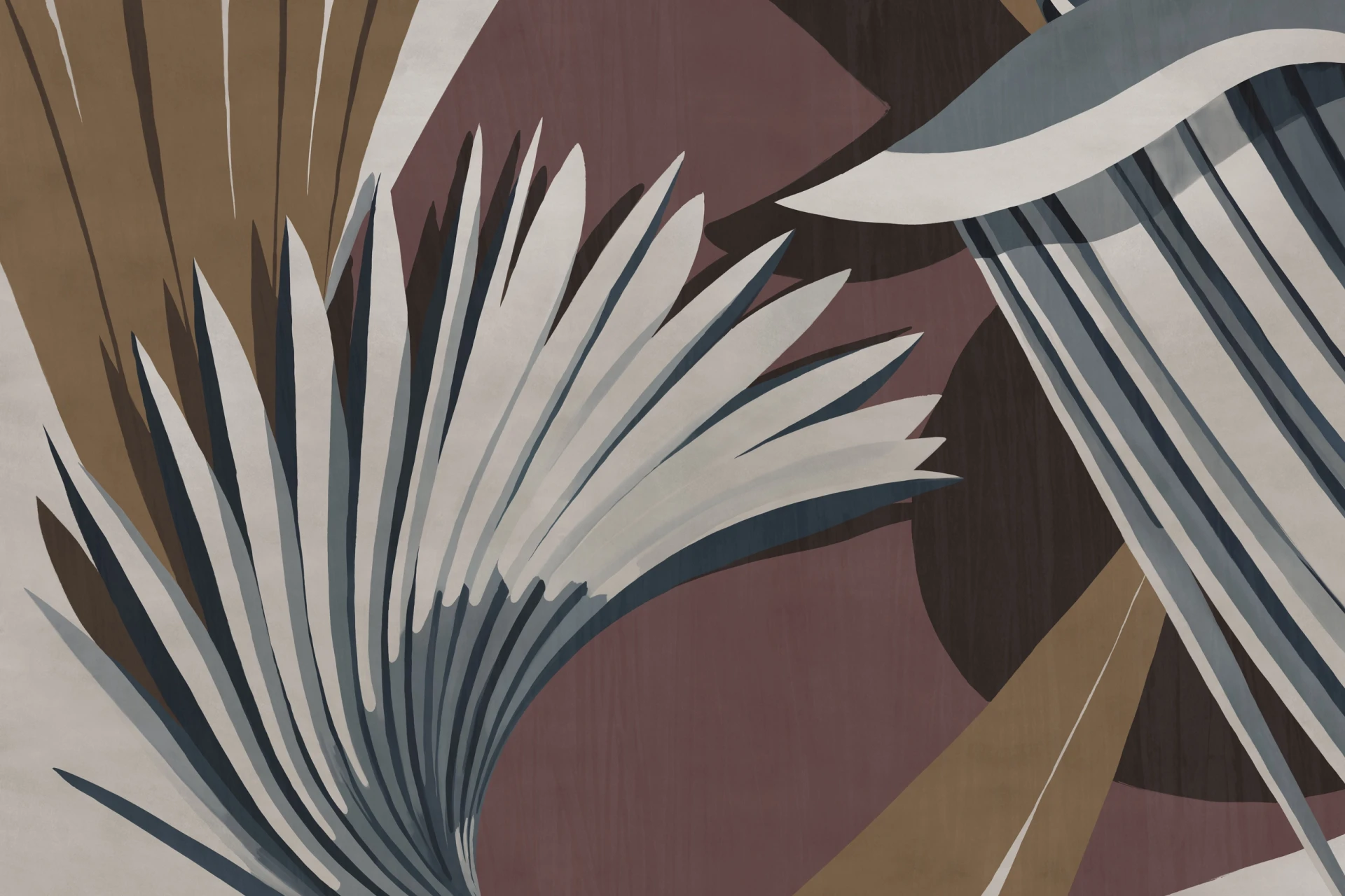Grafika Glamora KARUBA to dynamiczna, roślinna kompozycja oparta na unoszących się, spiralnie rozciągających się ostrych i łukowatych łodygach, które tworzą rytm przypominający wachlarz w ruchu. Kontrast czystych, zdecydowanych cięć i miękkich, zaokrąglonych kształtów nadaje motywowi energii i scenograficznej ekspresji, jakby ściana przemieniała się w tropikalne widowisko o współczesnym charakterze. Grafika występuje w wariantach kolorystycznych oraz w wersjach uzupełniających — mikro-patternach i neutralnych tłach o subtelnej fakturze — które pozwalają na harmonijne komponowanie wielkoformatowych aranżacji ściennych.