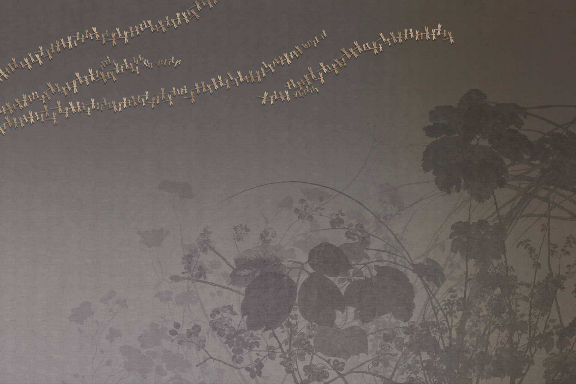 Grafika Glamora LEVANTE to kompozycja, w której między botanicznymi sylwetkami i długimi źdźbłami traw rozpościera się duży, astronomiczny dysk rozświetlający przestrzeń łagodnym blaskiem. Małe ważki tańczą wokół jego krawędzi, jakby były iskrami światła na tle miękko nakładanych warstw faktur i delikatnych przejść kolorów, tworząc wrażenie wewnętrznej świtu, który otwiera pejzaż i spowalnia jego czas. Grafika występuje w wariantach kolorystycznych oraz w wersjach uzupełniających — abstrakcyjnych mikro-patternach i neutralnych tłach o subtelnej teksturze — które umożliwiają komponowanie harmonijnych, wielkoformatowych aranżacji ściennych.