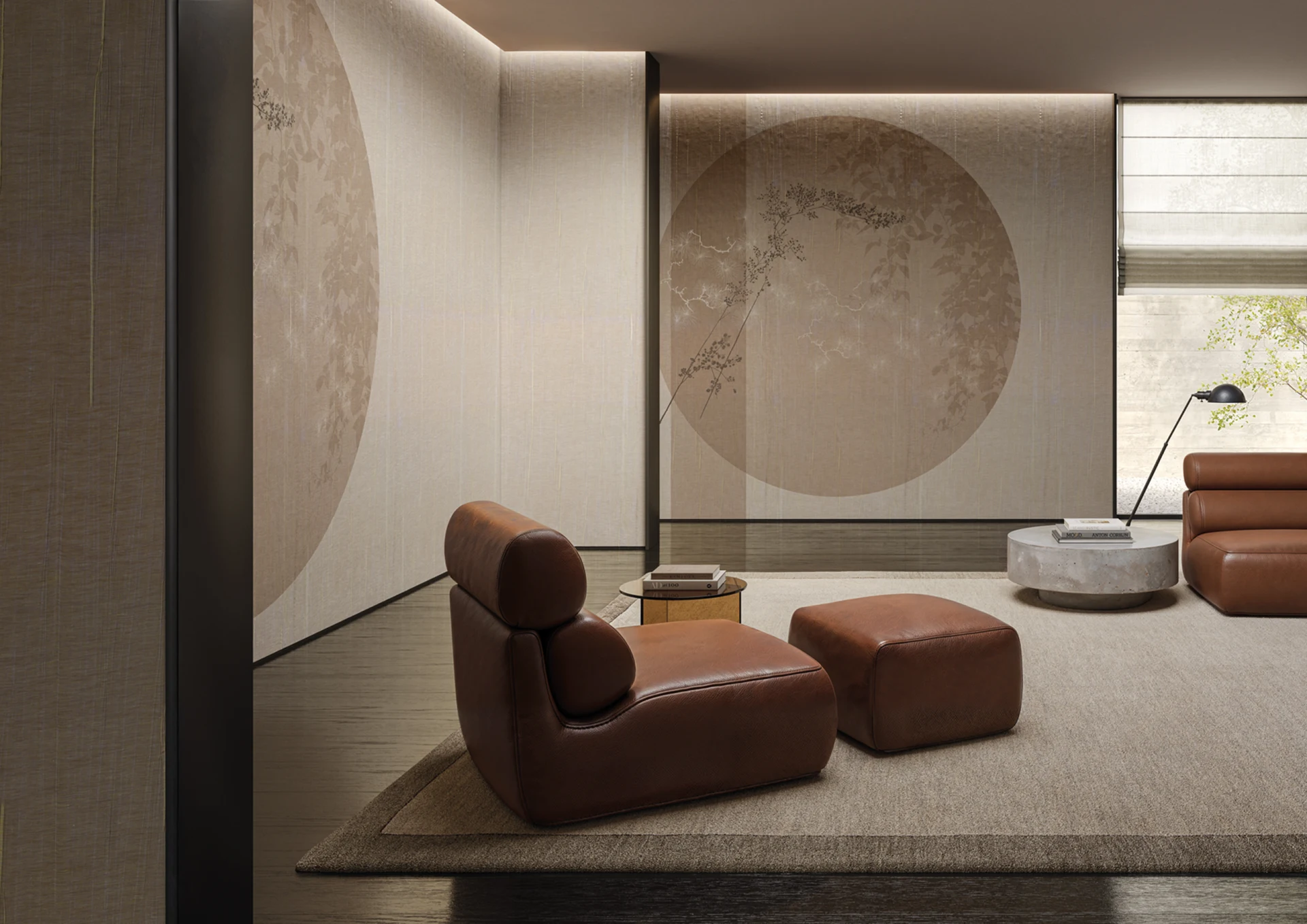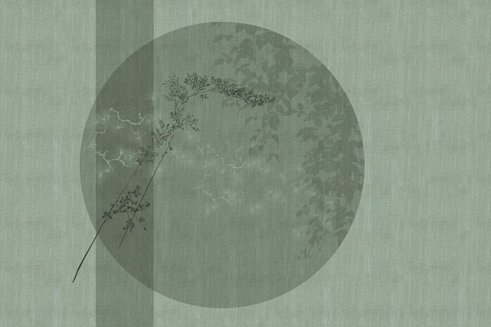 Tapeta występuje w dwóch spokojnych wersjach: z delikatnym motywem okręgu i roślin oraz jako bardziej neutralne, teksturowane tło. Dekoracyjny wariant daje ścianie subtelny punkt skupienia — miękkie koło, cienkie gałązki i rozmyte liście tworzą lekki, naturalny efekt bez mocnego kontrastu. Gładka wersja dobrze sprawdzi się tam, gdzie potrzebne jest ciche tło dla mebli, obrazów albo innych dodatków. Jasna kolorystyka, beże i faktura przypominająca tkaninę ocieplają wnętrze i pasują do sypialni, salonu, gabinetu oraz spokojnych przestrzeni wypoczynkowych.