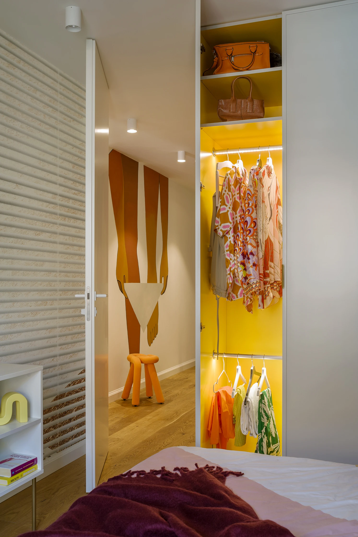 Brwinów, położony tuż za zachodnią granicą Warszawy, od kilku lat przyciąga tych, którzy szukają spokoju bez rezygnowania z bliskości miasta. Wśród niskiej zabudowy i sędziwych dębów powstało kameralne osiedle, które zyskało nowych mieszkańców spragnionych kontaktu z naturą. Jedną z nich jest inwestorka projektu - artystyczna dusza, miłośniczka psów, fotografii i podróży. To właśnie jej styl życia stał się punktem wyjścia dla projektu wnętrza, w którym energia, kolor i funkcjonalność spotykają się w harmonijnym dialogu.