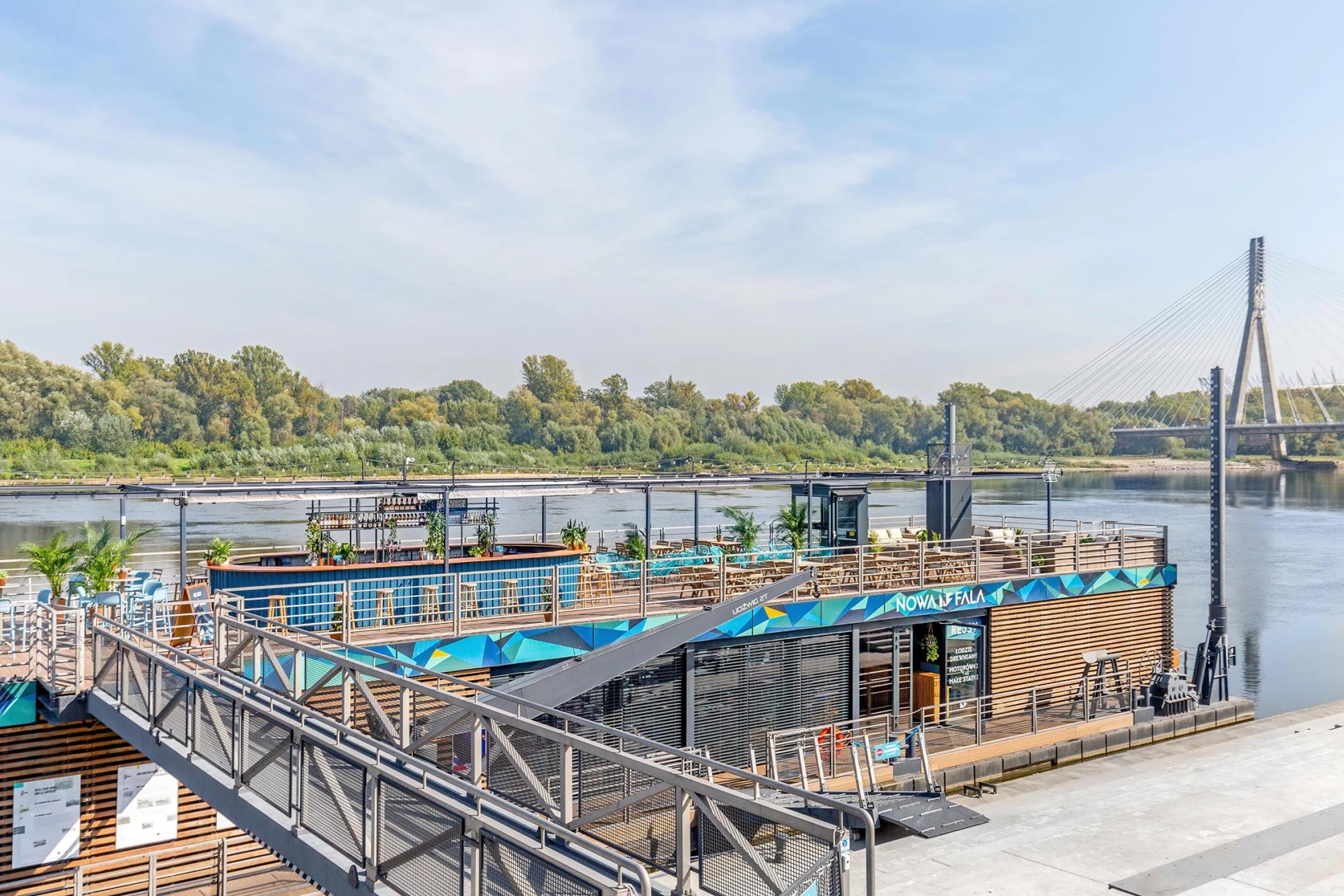 Przystań Nowa Fala dryfuje z prądem designerskich nurtów łącząc atmosferę żeglarskiego portu oraz wakacyjnego entourage’u. Zakotwiczona w centralnym punkcie Bulwarów Wiślanych, tuż obok Centrum Nauki Kopernik i Muzeum Sztuki Nowoczesnej w Warszawie, zapewnia odpowiednie warunki do cumowania pojazdów wodnych, które kursują po Wiśle.