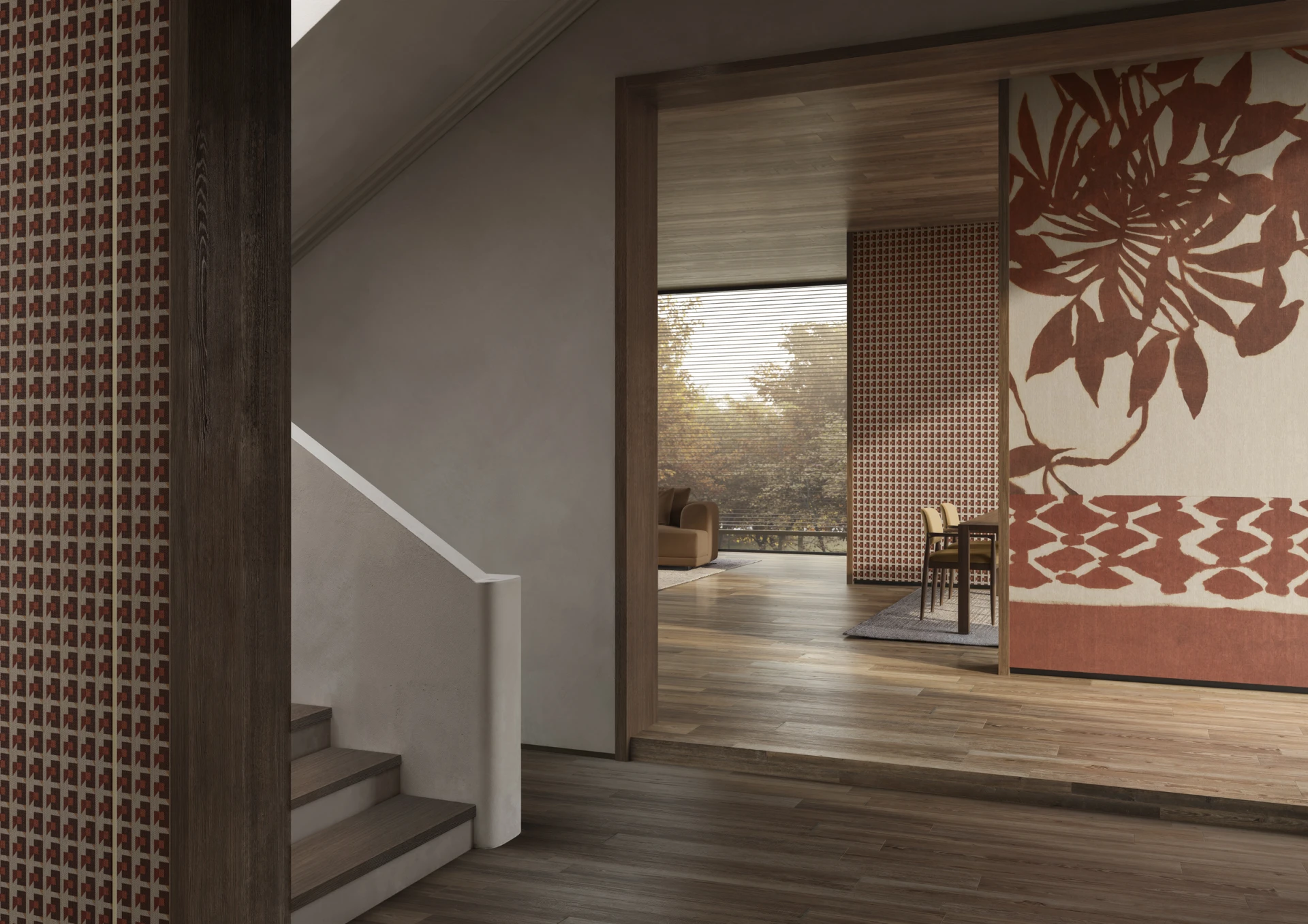 „Bohème Fleur” dostępna jest w dwóch wersjach kolorystycznych, które różnią się nastrojem, ale zachowują ten sam charakter wzoru. Jedna oparta na cieplejszych, ziemistych tonach, druga w chłodniejszej, bardziej stonowanej palecie. Dzięki temu motyw można dopasować zarówno do wnętrz o przytulnym klimacie, jak i tych bardziej minimalistycznych czy nowoczesnych.