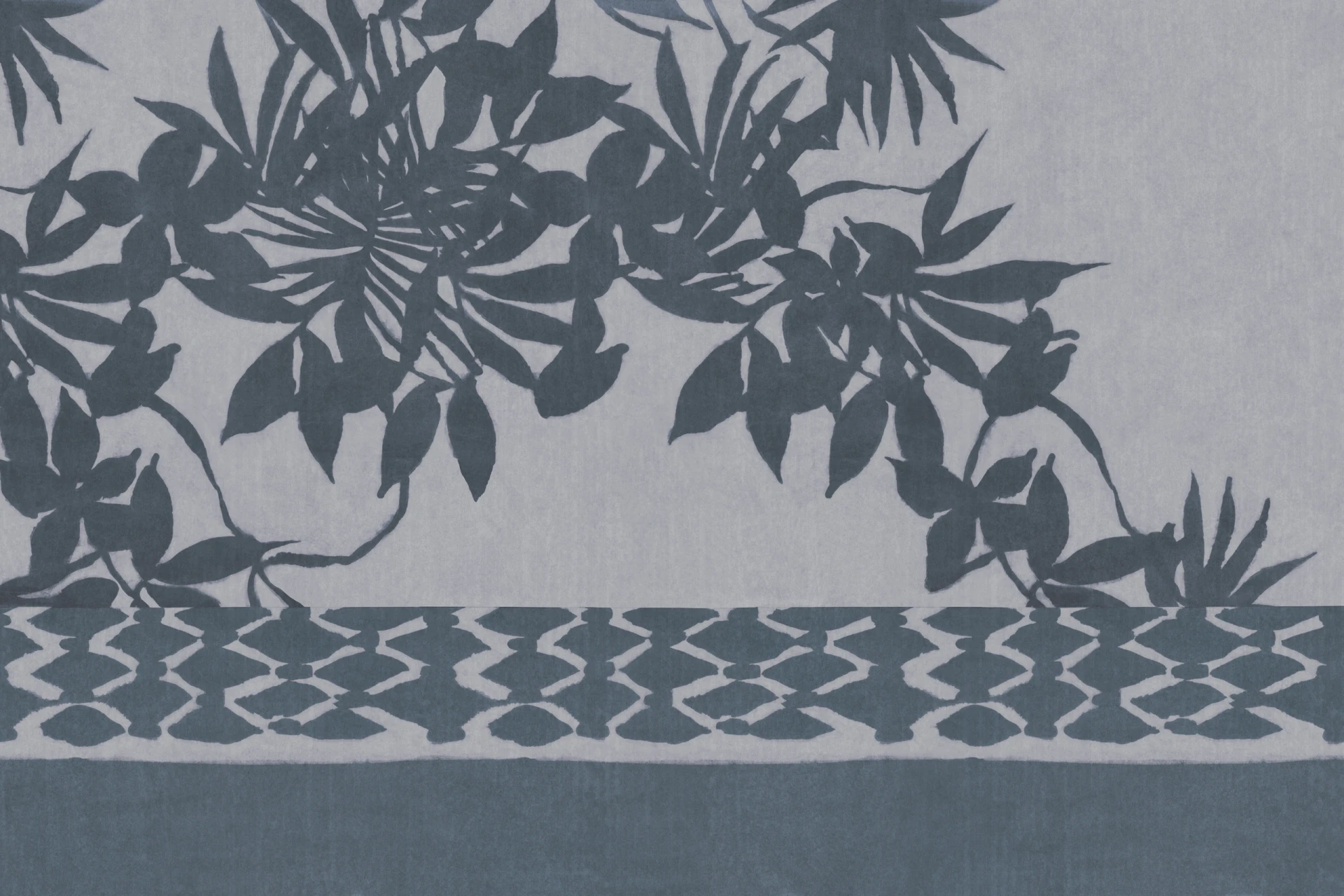 „Bohème Fleur” nie opowiada dosłownej historii roślin. Sylwetki liści są uproszczone, niemal cieniowe, tworząc dekoracyjny wzór przypominający nadruk na tkaninie lub ręcznie malowany mural. Motyw rozwija się w górnej części ściany, pozostawiając przestrzeń na „oddech” i światło.