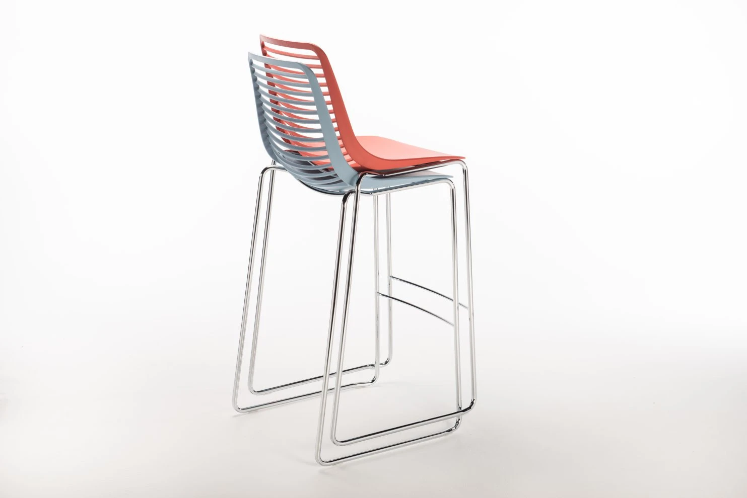 Mini Stool Round od Casprini to nowoczesny hoker barowy na płozach o minimalistycznej formie. Ekstrawaganckie krzesło, które przyciąga spojrzenia dzięki niezwykłemu designowi. Oszczędne wzornictwo siedziska kontrastuje z niecodziennym kształtem metalowego stelażu. Fantazyjne nogi krzesła, w formie stalowych prostokątów, łączy – niczym most – elegancka, smukła belka. Krzesło sięga 110 cm i zostało wykonane z technopolimeru. Hoker barowy od Casprini to celne zestawienie prostoty i fantazyjności.