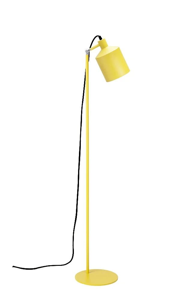 Lampa podłogowa Lektor w żółtym, satynowym kolorze.