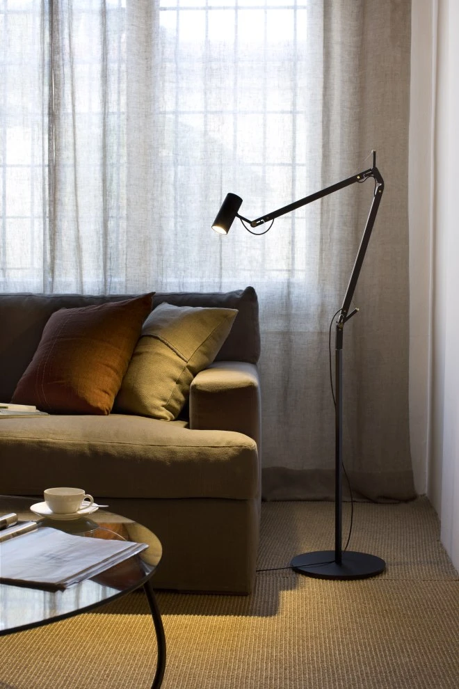 Polo od Marset to podłogowa lampa z regulowanym ramieniem, której ruchoma oprawa umożliwia dowolne kierunkowanie strumienia światła. Dzięki dodatkowym akcesoriom jest niebywale funkcjonalna, przy czym zachowuje nietuzinkową formę. Perfekcyjny design idealnie wkomponowuje się w nowoczesne, minimalistyczne wnętrza.