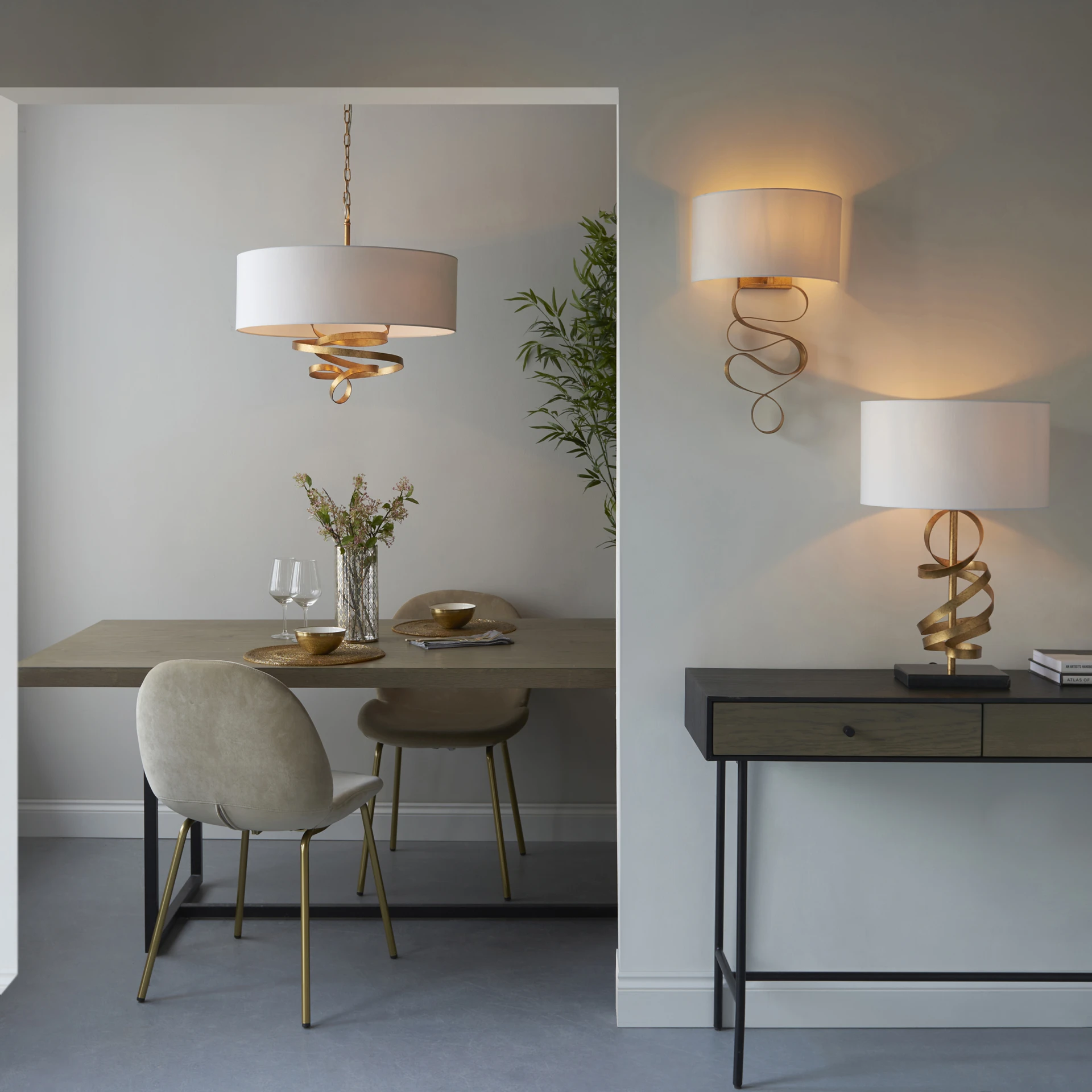 Oszałamiające wykończenie w kolorze złota pokrywa piękne wstążki lampy stołowej Ribbon Table DLC-82071 marki DekoLuce Classic. Wysokiej jakości nowoczesny klasyk do oświetlenia domu.