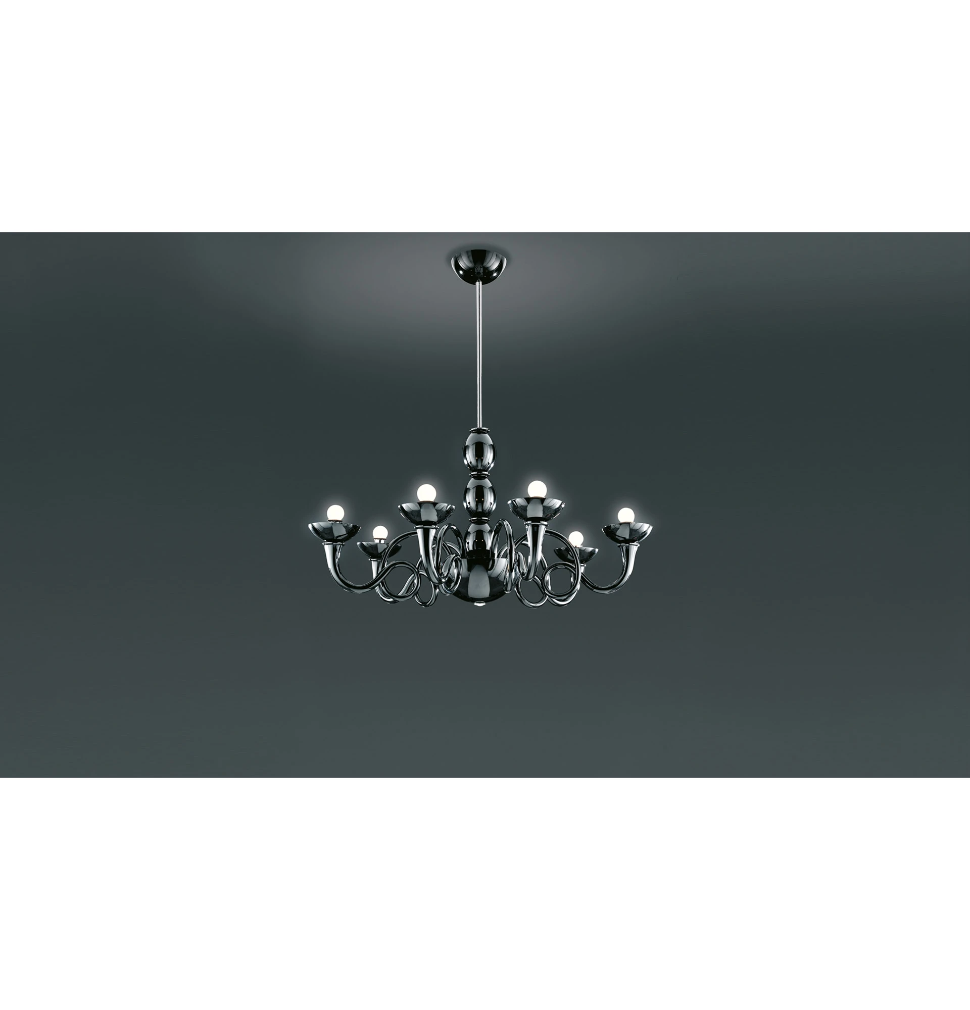Pantalica od Artemide to elegancka lampa wisząca wykonana ze szkła dmuchanego w kolorze czarnym lub białym. Subtelnie oświetli każde wnętrze, nada mu wyjątkowego charakteru i blasku. Na uwagę zasługuje jej klasyczna i gustowna forma składająca się z centralnej struktury i sześciu zaokrąglonych ramion. Pantalica o nietuzinkowym kształcie pozwala na stworzenie nieprzeciętnej dekoracji.