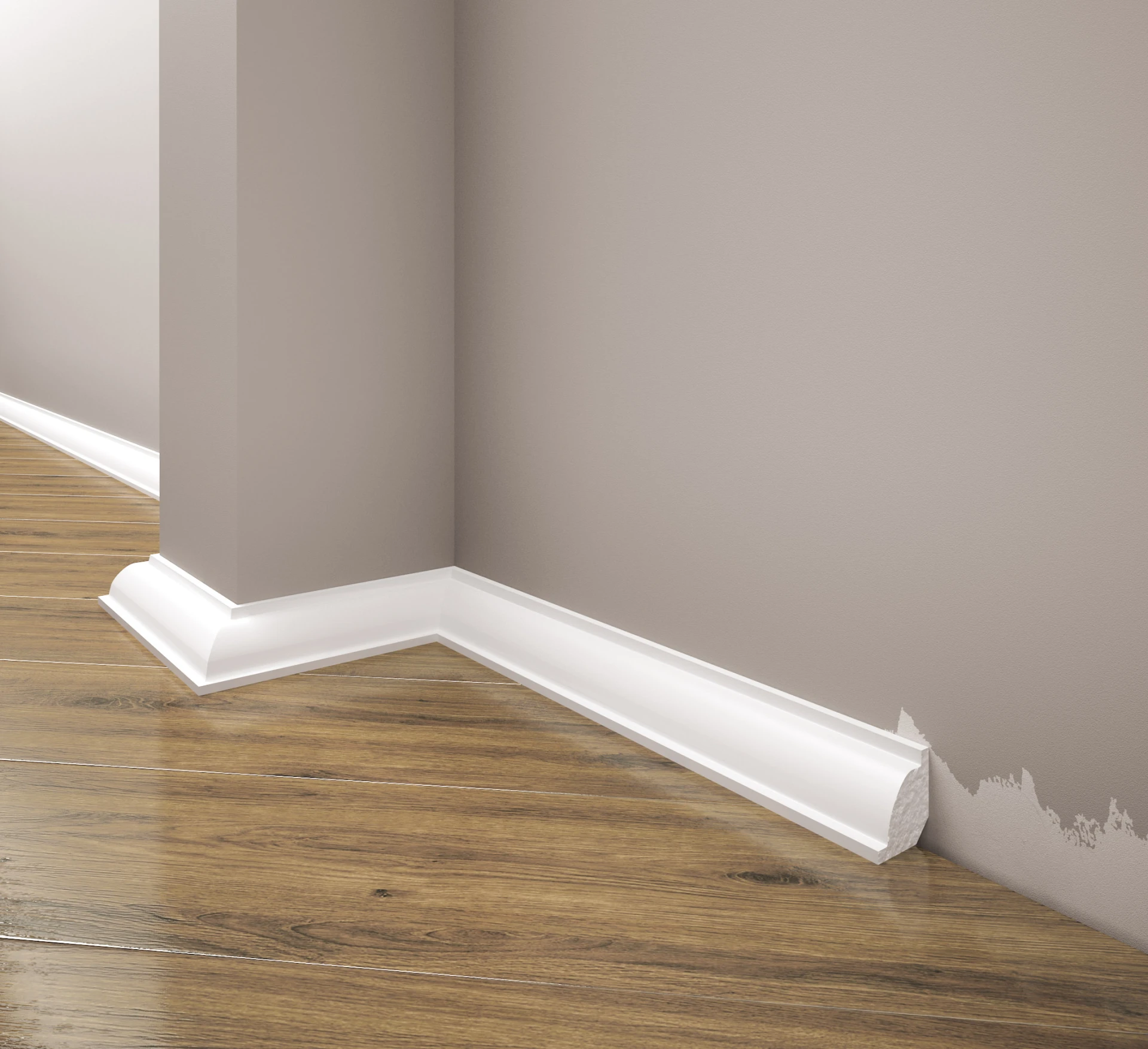 Listwa przypodłogowa LPC-01M od firmy Creativa to gustowny element sztukaterii, który jest połączeniem doskonałej jakości i praktycznego rozwiązania. Produkt jest pomalowany na biało i gotowy do natychmiastowego montażu. Listwę wykonano z twardego tworzywa, które jest odporne na wilgoć i na uderzenia.