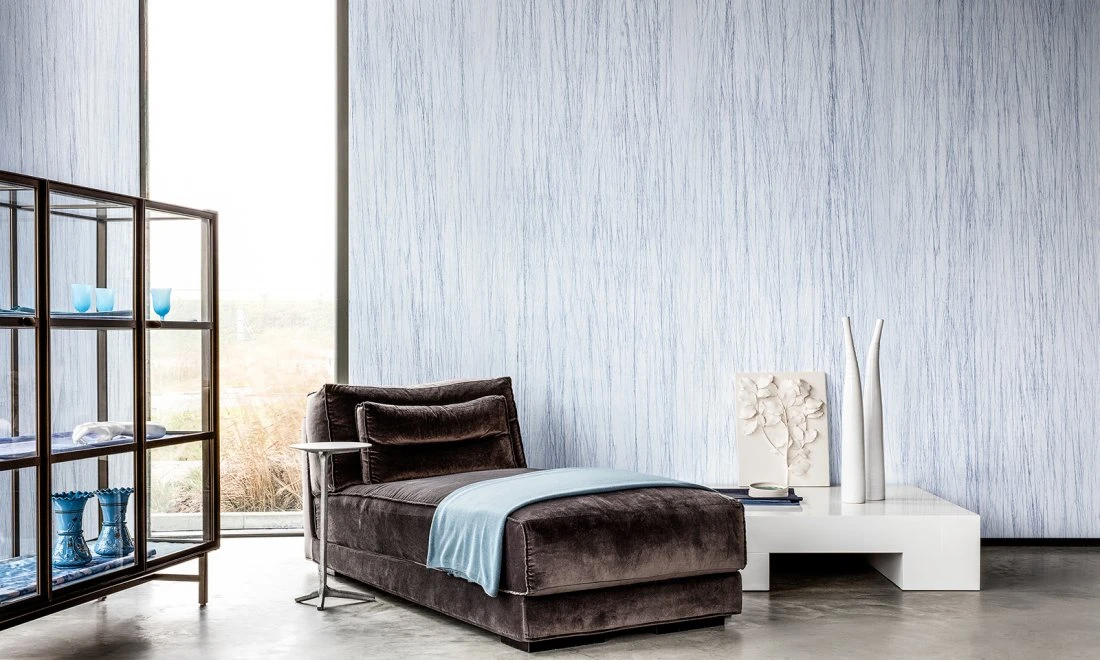 Tapeta Cobalt kolekcji Alchemy cechuje się delikatnością i nieliniowością. Barwy tego wzoru oscylują między arktycznym zimnem, a pustynnym ciepłym wieczorem.