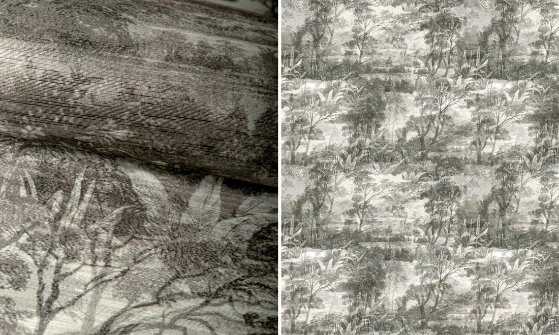 Wzór Glade kolekcji Avalon przypomina wczesny mglisty poranek w lesie równikowym. Ta tapeta potrafi wnieść ciepło do każdego pomieszczenia.