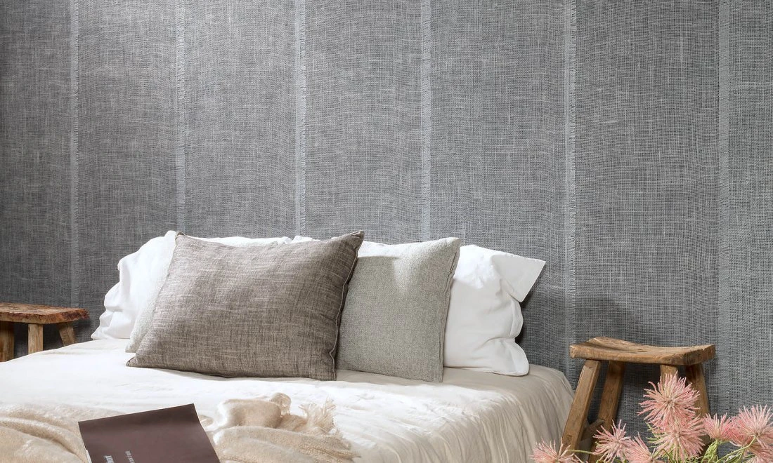 Tapeta Uno kolekcji Insero imituje dobrze upleciony materiał. Monochromatyczność barw daje w tym przypadku niezły efekt.