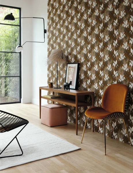 Kolejna propozycja marki Casamance to kolekcja Orphee. Okładzina ścienna Tigris w tropikalny wzór dla fanów botaniki. Ukryte tygrysy i wielkie palmowe liście tropikalne świetnie sprawdzą się w pomieszczeniach w stylu vintage. Delikatne kropki na wzorze tworzą unikatowe wykończenie. Piękne stonowane barwy dostępne są w 3 wariantach.