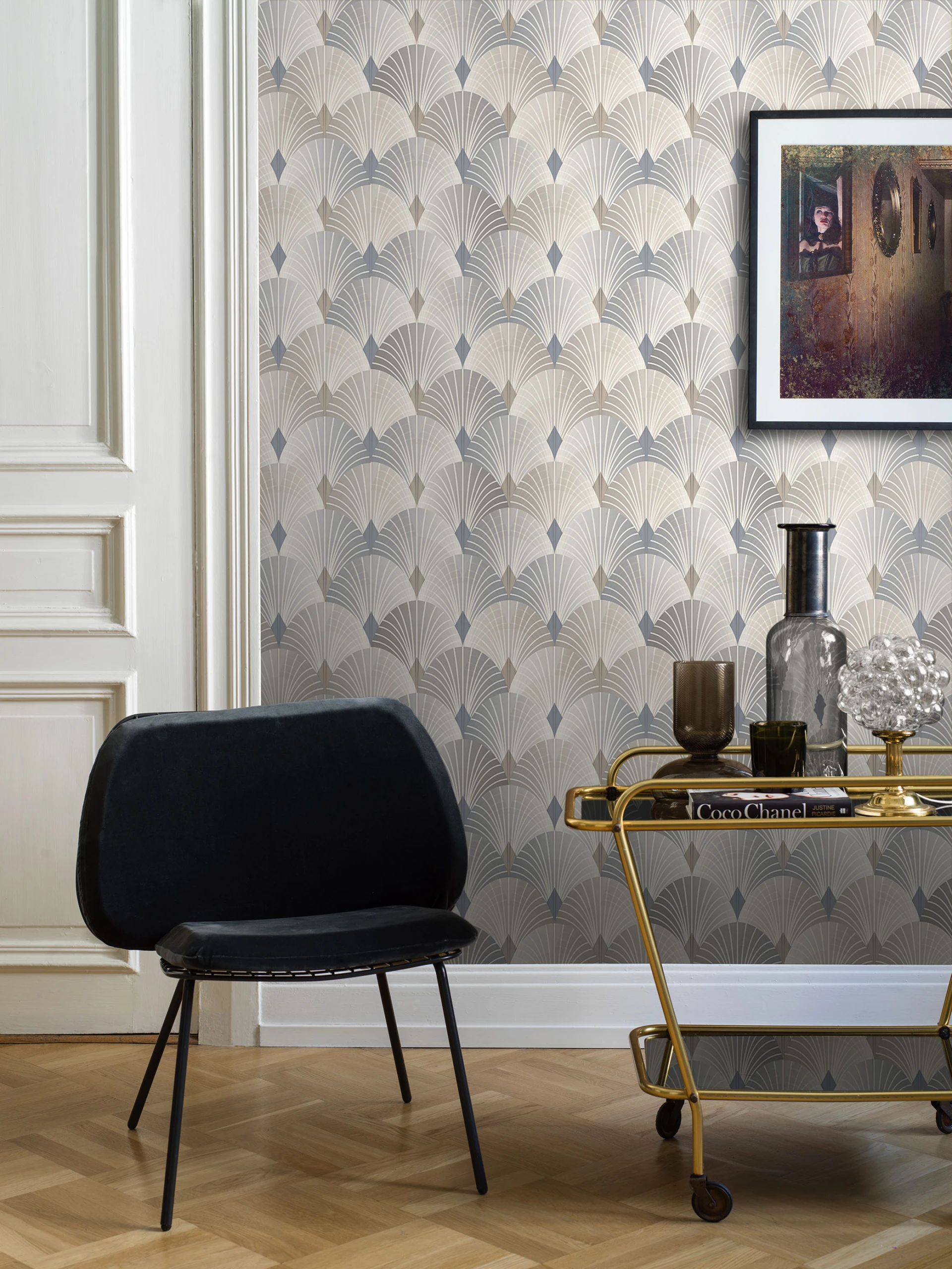 Pigalle z kolekcji Lounge Luxe to tapeta firmy Borastapeter z pięknym wzorem łuku w kropki i wyraźne wyczucie stylu art deco. Ta designerska okleina jest idealna zarówno do sypialni, jak i do salonu. Dostępna jest w trzech wersjach kolorystycznych.