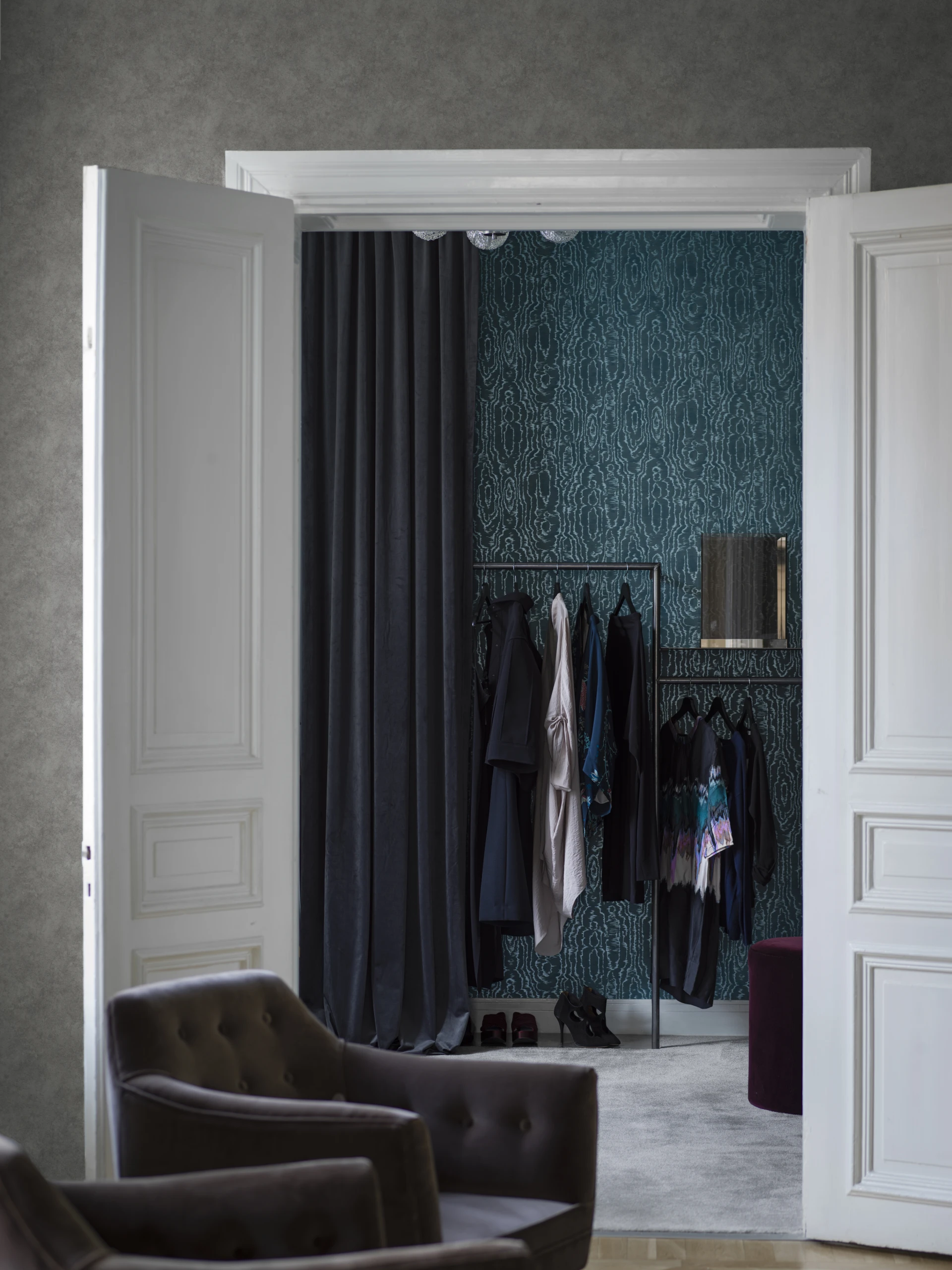 Riviera z kolekcji Lounge Luxe to tapeta firmy Borastapeter o interesującym wzorze, który ozdobi każdą ścianę. Sprawdzi się najlepiej w sypialni, przedpokoju czy salonie urządzonym w stylu glamour. Dostępna jest w czterech wersjach kolorystycznych.