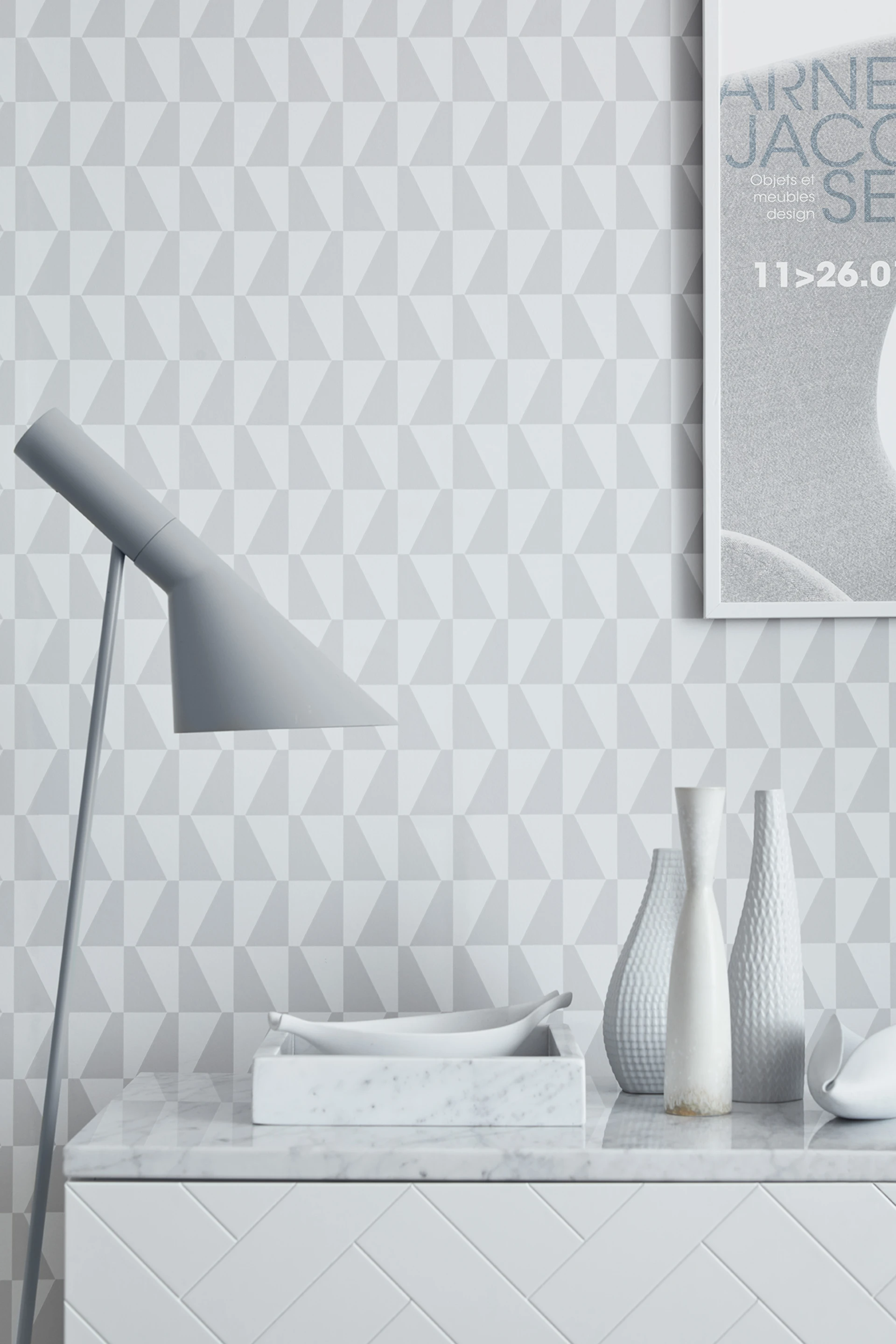 Trapez z kolekcji Scandinavian Des. II to tapeta firmy Borastapeter z klasycznym graficznym wzorem opartym na odwróconych trapezach. Jest to prosty, ale elegancki motyw. Sprawdzi się w każdym nowoczesnym wnętrzu z nutą retro. Okleina dostępna jest w czterech pastelowych kolorach.