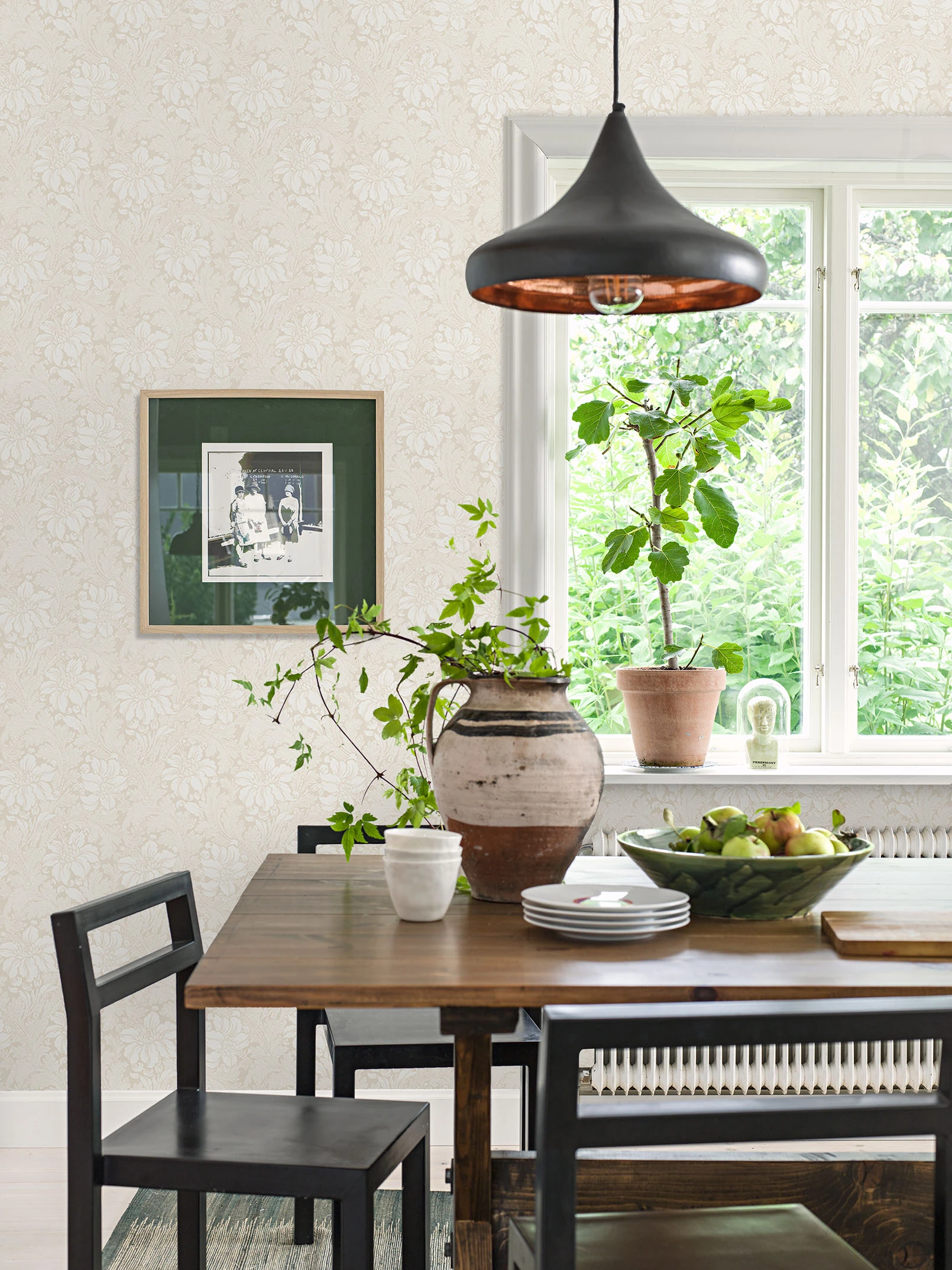 Acanthus z kolekcji Vårt Arkiv to tapeta firmy Borastapeter z roślinnym wzorem, który zawiera kontrastujące tony i wijący się motyw po ścianie, który tworzy elegancki efekt na ścianie. Sprawdza się w sypialni, salonie czy przedpokoju. Będzie najlepszym tłem dla aranżacji w stylu skandynawskim. Okleina jest dostępna w sześciu wersjach kolorystycznych.
