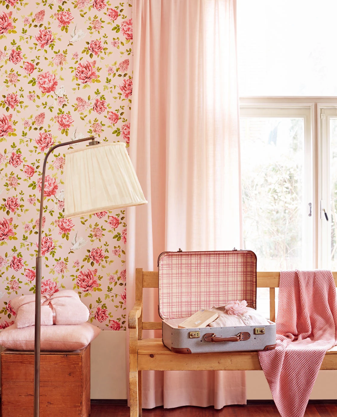 Tapeta Bisou de mme Pitou od Eijffinger (365030, 365031, 365032, 365033, 365034, 365036, 365037) to idealnie zaprojektowana dekoracja, wprost do sypialni, salonu, kuchni czy pokoju dziecięcego. Naturalny motyw przedstawia kwiaty i ptaki, przenosząc do świata cudownej przyrody. Tapeta pasuje do romantycznych oraz klasycznych aranżacji.