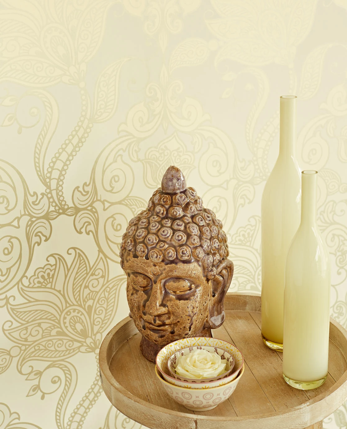 Tapeta Charm od Eijffinger (331238, 331239, 331240, 331244) posiada oryginalny rośliny wzór, który na ścianie pięknie się mieni, w zależności od kąta pod jakim patrzymy na ścianę. Tapeta polecana jest do salonu, sypialni oraz przedpokoju. Znakomicie oddaje charakter klasycznych i romantycznych aranżacji wnętrz.