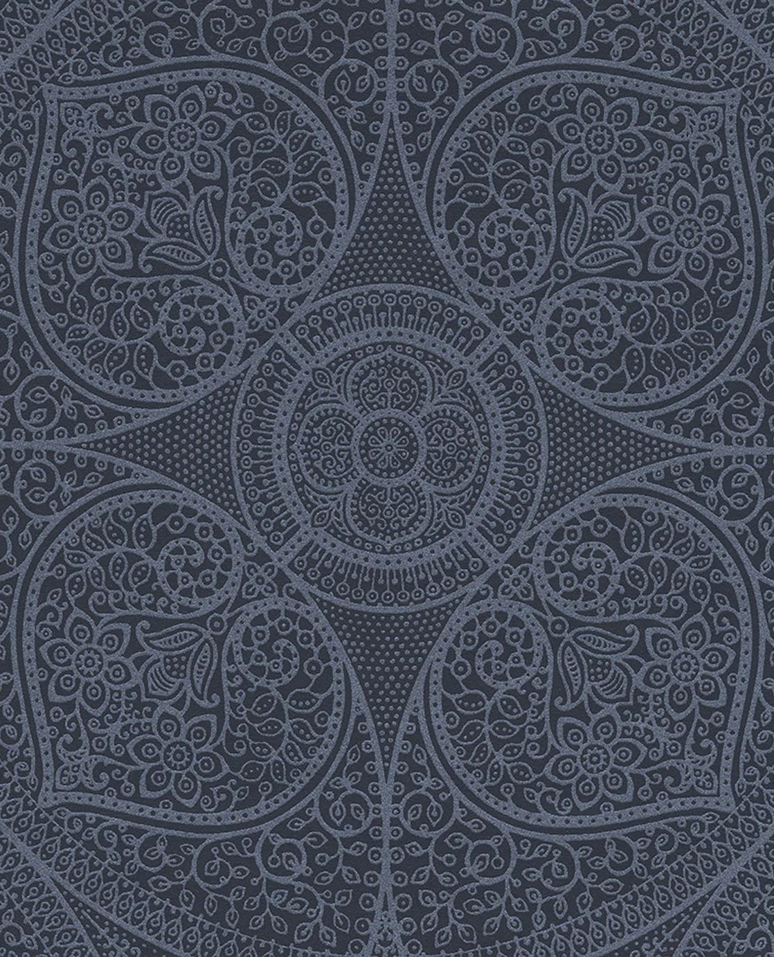 Tapeta Yasmin od Eijffinger (341759, 341758, 341757, 341756, 341755, 341754, 341751, 341750) to orientalna okleina motywem przypominająca indyjską sztukę zdobienia ciała. Drobne roślinne wzory zamknięte są w geometrycznych kręgach. Tapeta doda nuty orientu do każdego pomieszczenia w którym się znajdzie.