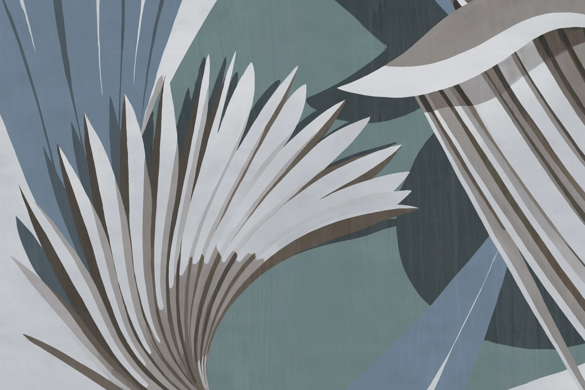 Grafika Glamora KARUBA to dynamiczna, roślinna kompozycja oparta na unoszących się, spiralnie rozciągających się ostrych i łukowatych łodygach, które tworzą rytm przypominający wachlarz w ruchu. Kontrast czystych, zdecydowanych cięć i miękkich, zaokrąglonych kształtów nadaje motywowi energii i scenograficznej ekspresji, jakby ściana przemieniała się w tropikalne widowisko o współczesnym charakterze. Grafika występuje w wariantach kolorystycznych oraz w wersjach uzupełniających — mikro-patternach i neutralnych tłach o subtelnej fakturze — które pozwalają na harmonijne komponowanie wielkoformatowych aranżacji ściennych.