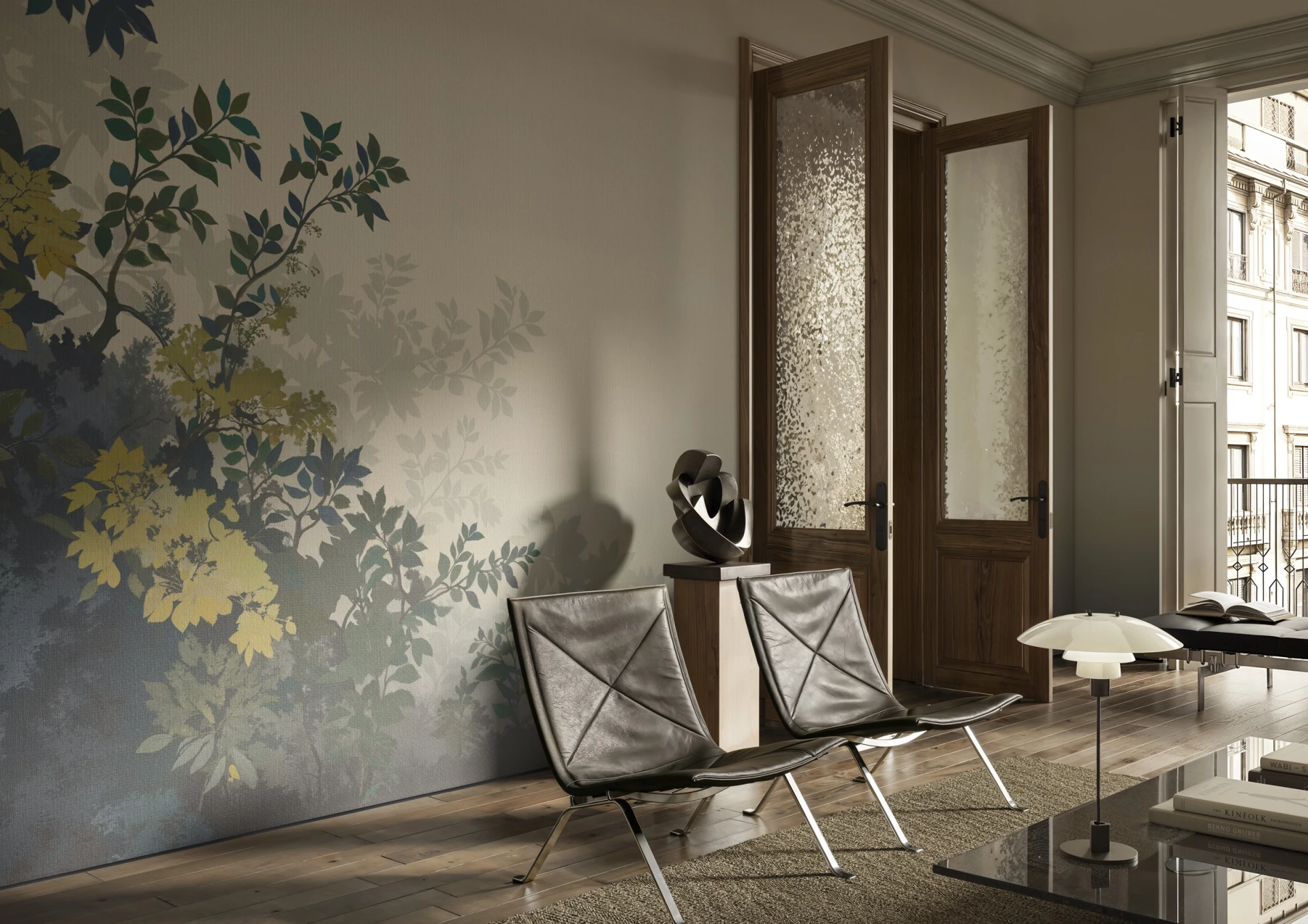 Grafika Glamora SOSPESO to kompozycja, w której delikatne gałęzie i pędy wyłaniają się z łagodnej mgły jak oddech rozciągający się w ciszy. Sylwetki roślinnych fragmentów i ich subtelne odbicia przenikają się w świetlistych przejściach, a przestrzeń rozciąga się w świetlistą oczekiwaną pustkę, gdzie natura staje się szeptem i zaproszeniem do powolnej, intymnej kontemplacji. Grafika występuje w wariantach kolorystycznych oraz w wersjach uzupełniających — mikro-patternach i neutralnych tłach o subtelnej fakturze — które umożliwiają komponowanie harmonijnych, wielkoformatowych aranżacji ściennych.
