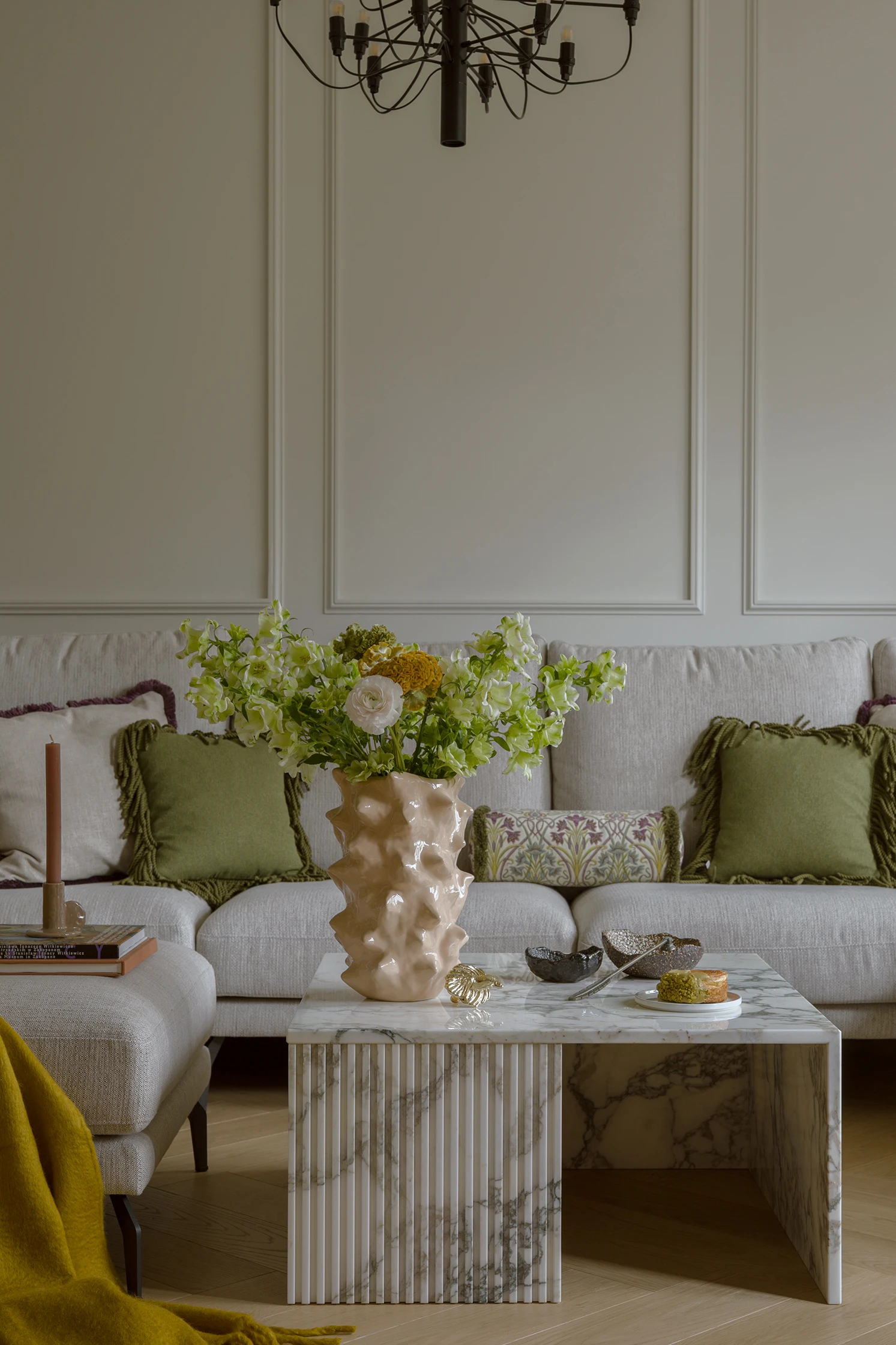 Realizacja projektu zakończyła się na przełomie 2024 i 2025 roku. Ale tak naprawdę ta historia nie ma końca - wnętrze będzie się zmieniać razem z właścicielką, nabierając nowych znaczeń. Marmur z czasem zmatowieje, światło będzie inaczej układać się na ścianach, a kolejne bukiety kwiatów zmienią zapach mieszkania.