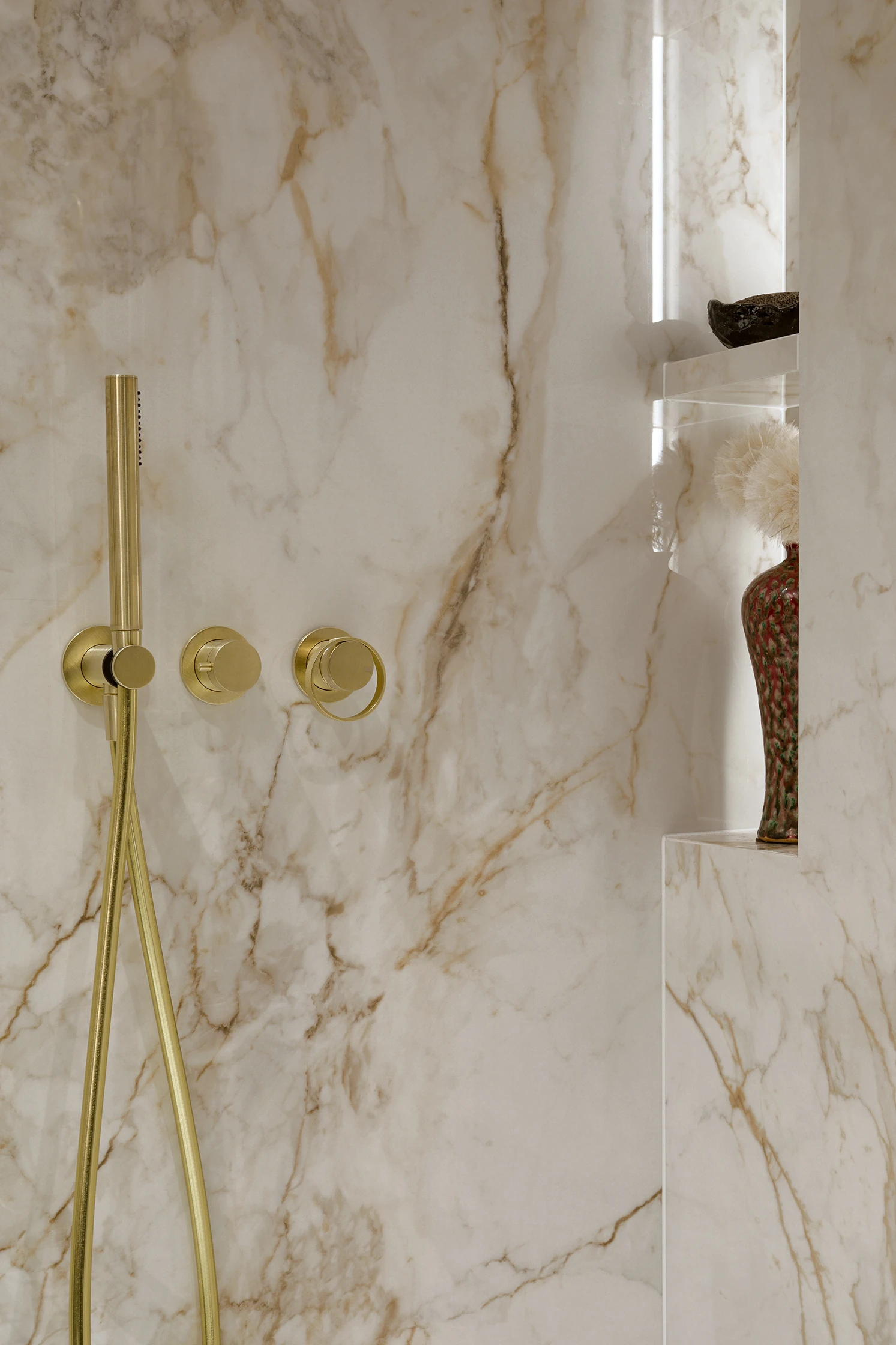 Pierwszym wyborem, który nadał ton całej aranżacji, był marmur Calacatta. Materiał wymagający, ale - jak mówi autorka projektu - „prawdziwy, jak emocje”. Klientka zakochała się w nim od pierwszego wejrzenia, choć świadoma była jego kaprysów. Wspólna wizyta u kamieniarza rozwiała wątpliwości - natura, z jej nieidealnością i głębią, wygrała z technologiczną perfekcją spieków.