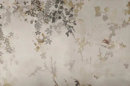 „Ampelo” jest wizualną metaforą jesiennego poranka – mglistą, pełną światła i refleksów. Liście wijących się pnączy tworzą subtelne warstwy, które stapiają się z tłem niczym cienie poruszane lekkim powiewem wiatru. Efekt półprzezroczystości nadaje kompozycji wrażenie głębi, a zarazem ulotności, jakby czas na chwilę się zatrzymał.